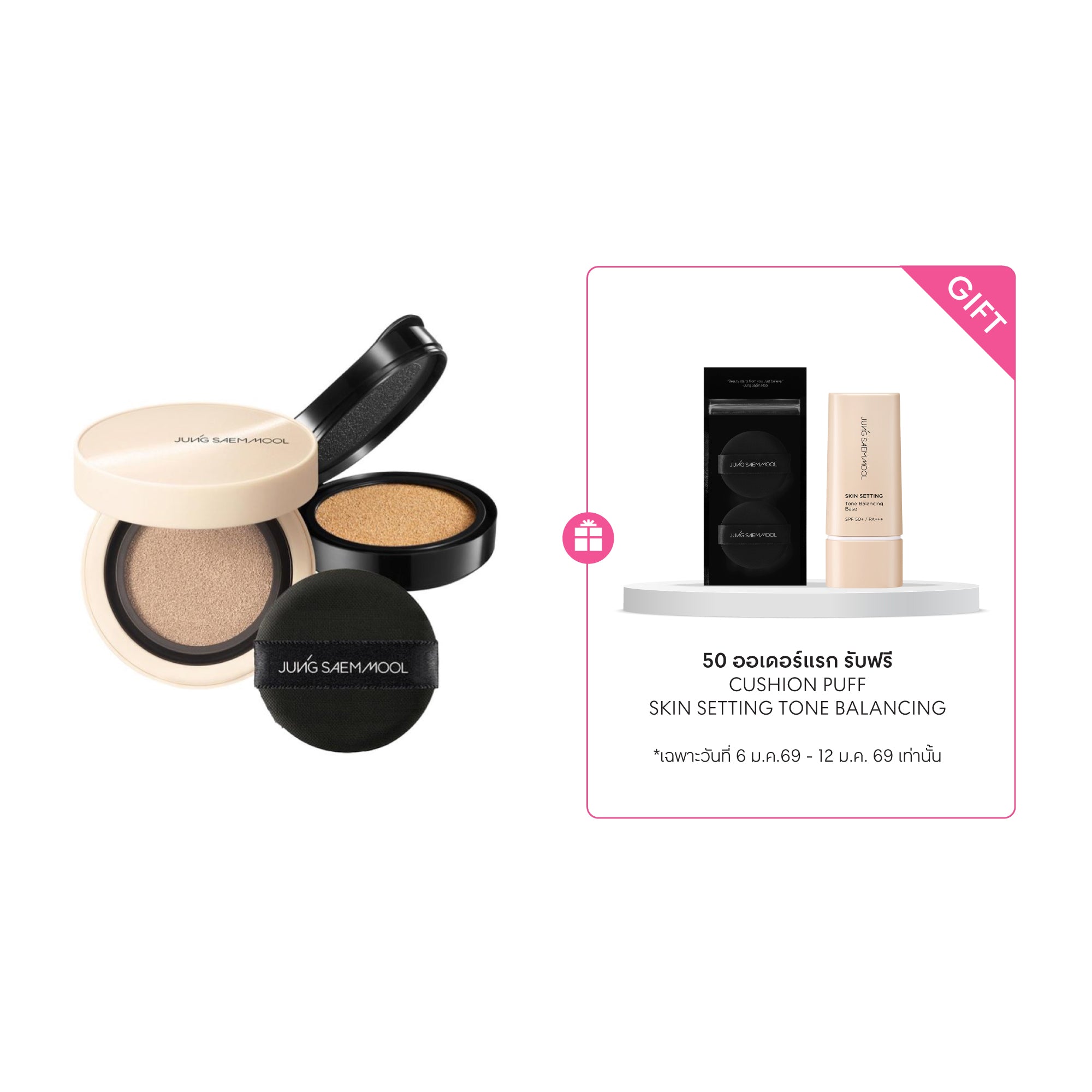 คุชชั่นของ Jung Saem Mool ปราศจากน้ำหอมและสารก่อการระคายเคือง ผิวแพ้ง่ายสามารถใช้ได้